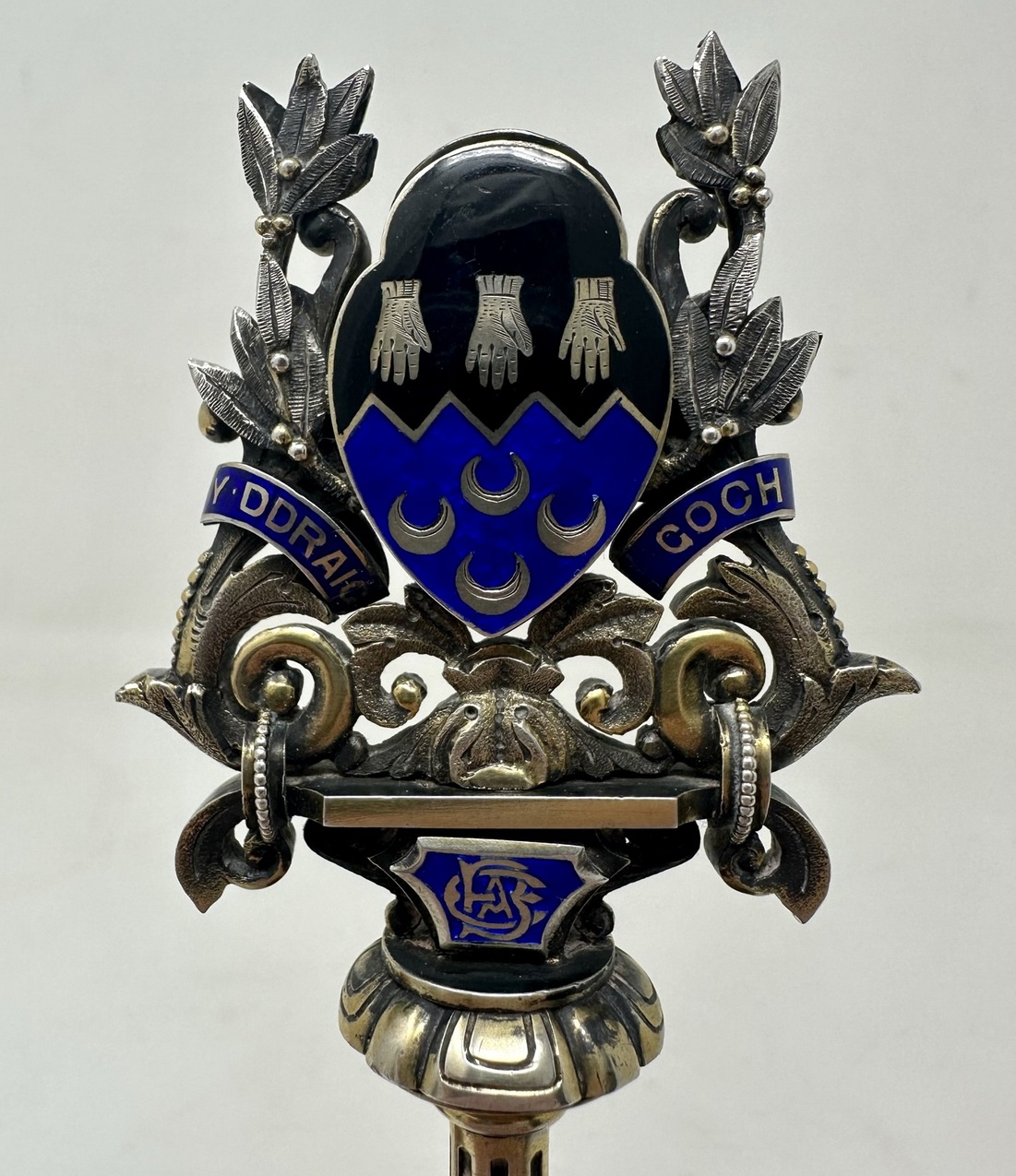 The ornate handle with blue and black enameling, the reverse reads Presented to Sir E Ashmead Bartlett on the occasion of the opening etc and dated November 1894.