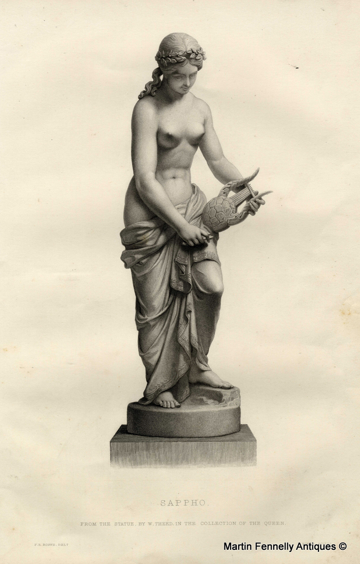 This is a Framed set of 5 Engravings from the original Art Journal printed in London in 1855 on the Great Exhibition in Paris 1855. The quality is superb and they make for a beautiful collection making a very Classical statement. These are originals from 1855. As Listed ‘Love Reviving Life‘ ‘Sappho‘ ‘The Temptation‘ ‘The Nymph of the Rhine‘ ‘Hope‘