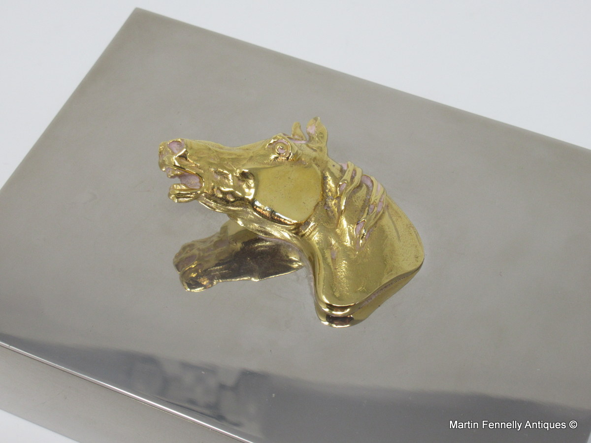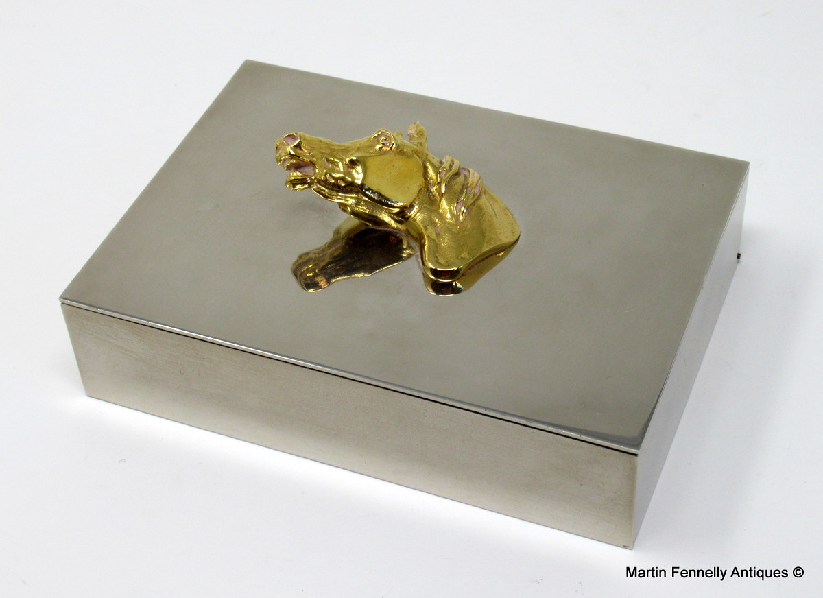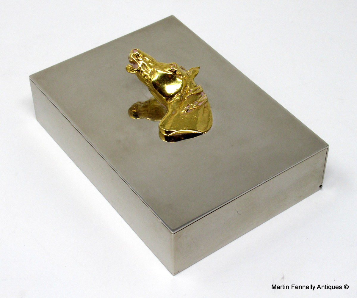 This Box was made Circa 1950 by The Famed Hermès of Paris and would make the perfect gift for that serious Card Player in your life. The box is silver plated and opens to reveal a sectioned interior where two packs of cards and a pen can be stored.