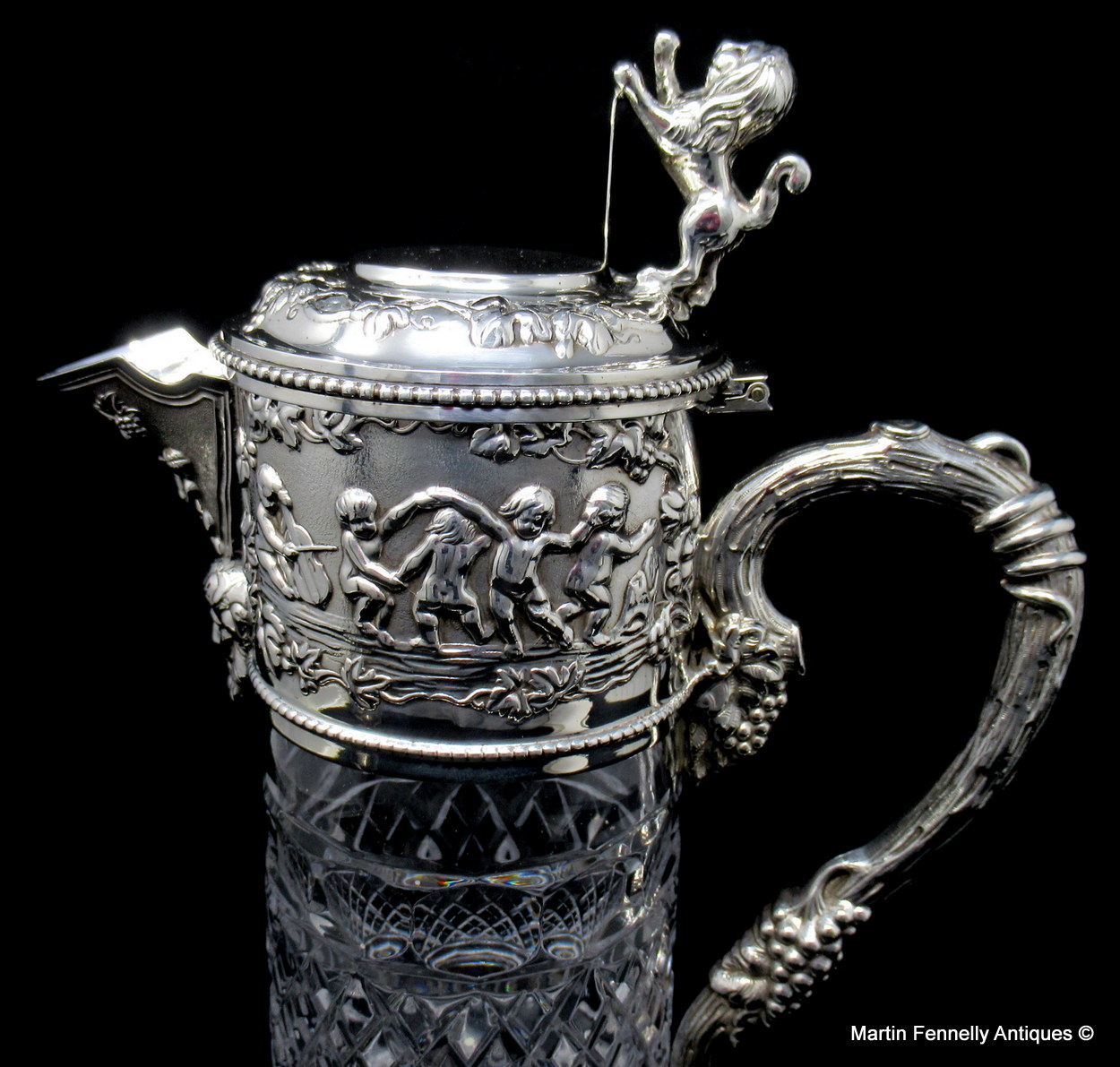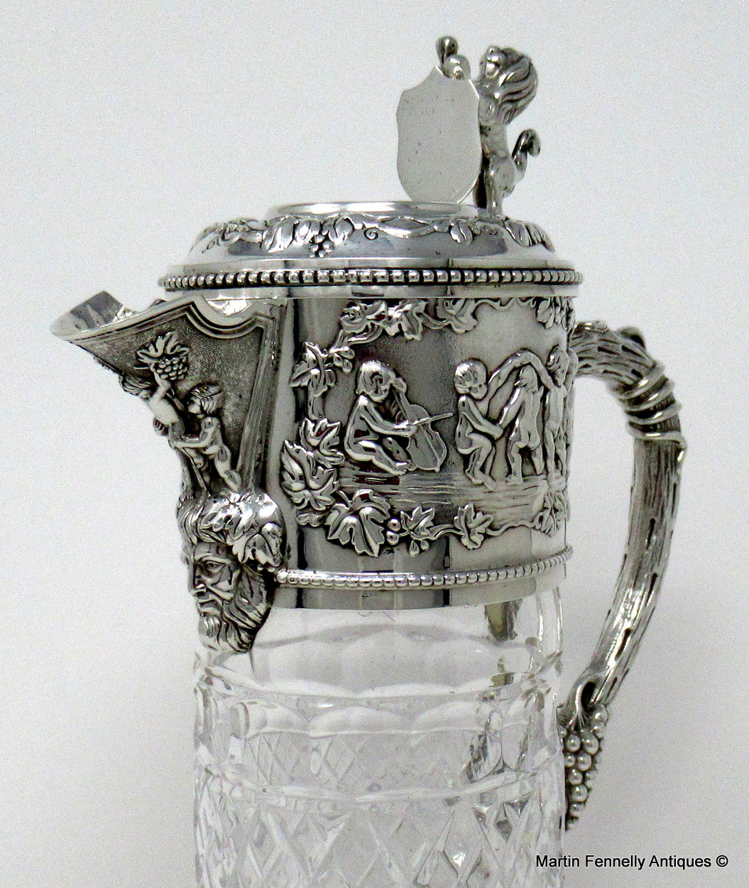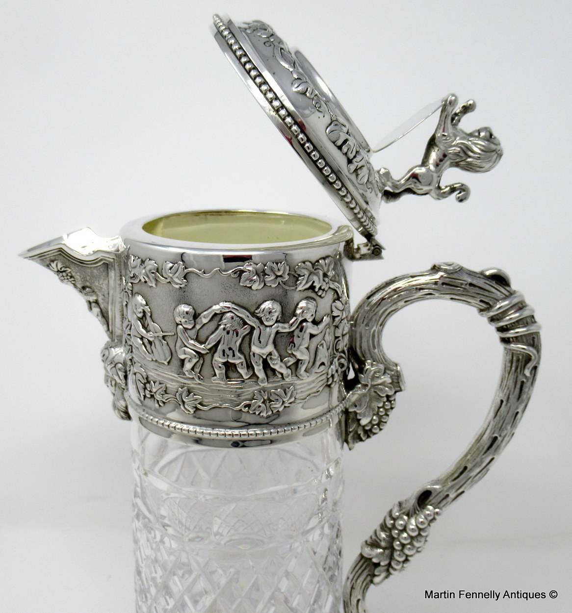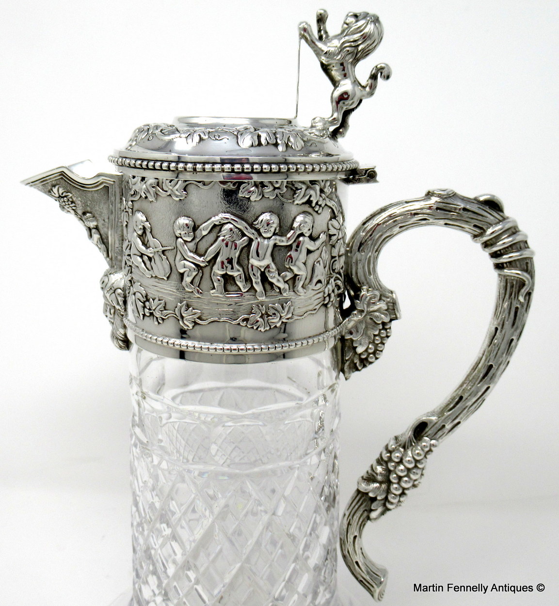 Superb Highly Ornate Continental Silver Pressed and Cut Glass Crystal Claret Jug of outstanding quality and Design, first quarter of the Twentieth Century,