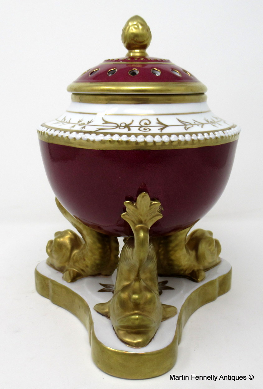 Rare Identical Pair of Early English Regency Royal Crown Derby Porcelain Pot Pourri or Pastile Burners of unusually large proportions. First half of the Nineteenth Century.